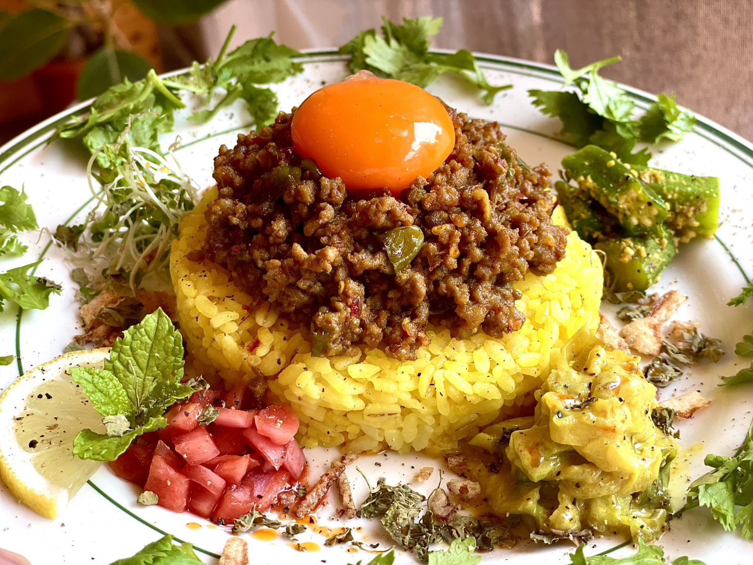 この店の原点は、特別な修行や海外経験ではない。日々の飲食の現場、そして賄いの一皿にあった。三重県出身の店主は、長年にわたり飲食業に携わる中で、自然とカレーを作る機会を重ねていった。その中で出会ったのが「スパイス」という奥深い世界だった。